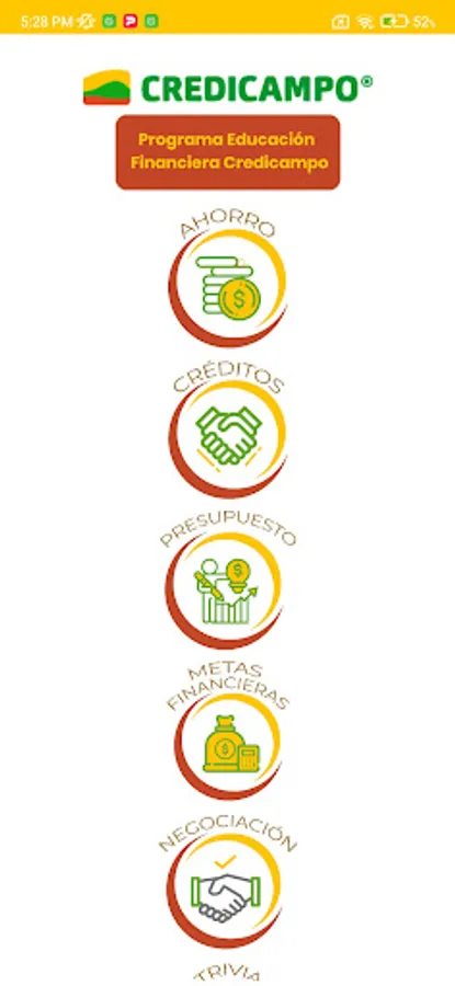 Interactive financial education with relevant topics for CREDICAMPO clients who serve the base of the pyramid, through short videos, games, trivia and andragogic resources that impact the quality of life of clients.