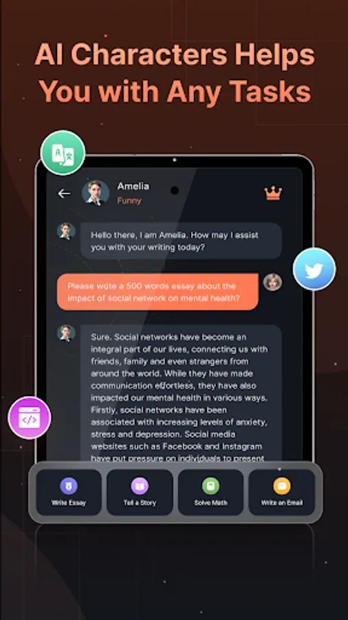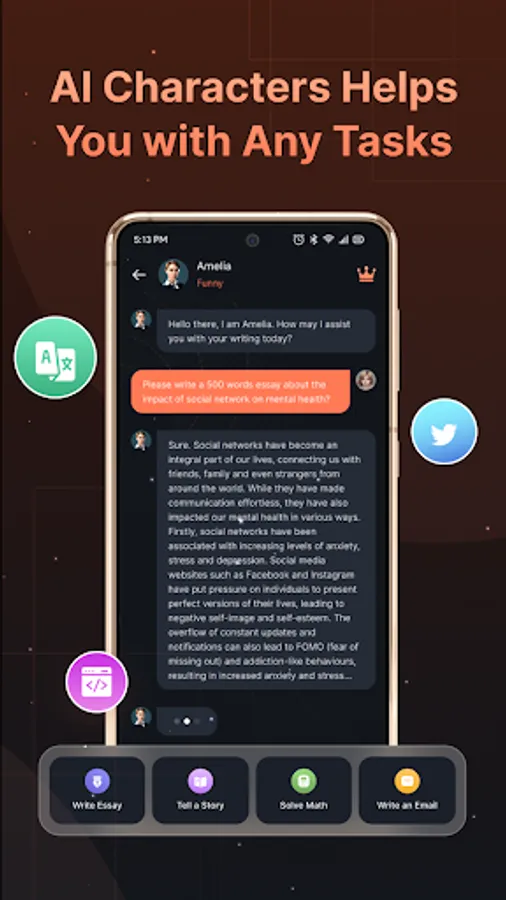 In addition to the captivating chat experience, the app also offers an AI Assistant to assist you with a wide range of tasks. Need help with essay writing? The Chai AI Assistant is here to provide guidance and suggestions. Stuck on a math problem? Let the AI Assistant solve it for you. With AI Chat Character, your personal AI Assistant is always ready to lend a hand. Choose from hundreds of AI characters, each with their own unique traits and backgrounds, guaranteeing a diverse and enriching chat experience.