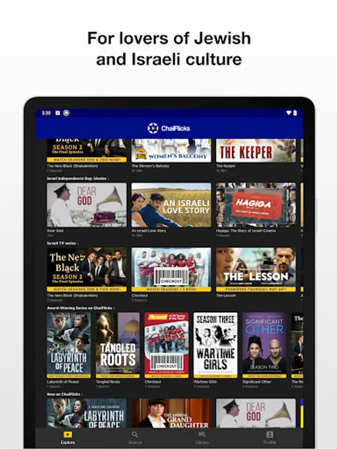 Through the streaming of engaging and provocative Jewish and Israeli entertainment, ChaiFlicks will provide its subscribers with a destination to engage, learn, laugh, cry, be inspired and be exposed to programming in a wide range of genres and languages for a multi-generational, culturally aware audience.