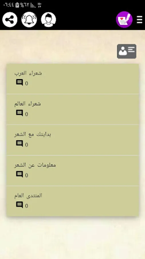 1- Poem writing section: Through this section he write poems in various fields and show them to the world. All you have to do is specify the field to which his poem belongs and publish it, and among the areas of poetry that he can publish: