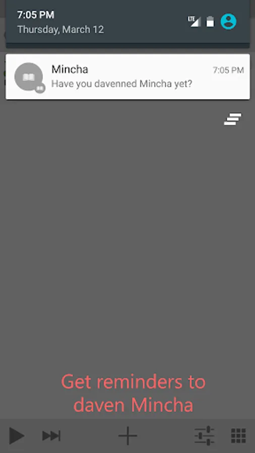 - Make a custom Mincha reminder before sunset complete with a button to launch Mincha on your Siddur app