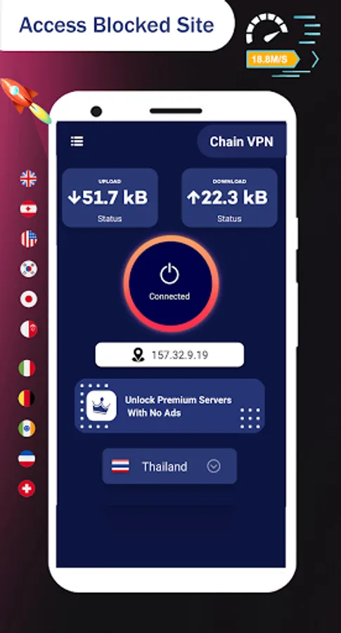 Chain VPN - The best free and unlimited vpn for android to unblock sites, watch online video, bypass blocked apps, secure WiFi hotspots and browse privately & anonymously.
