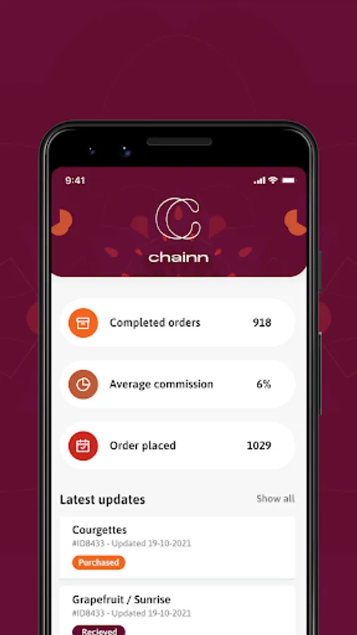 Customer: As a customer of Chainn BV Inchainn gives you insight into the status of your order and the origin of your product. In addition, Inchainn gives you direct insight into your outstanding invoices.