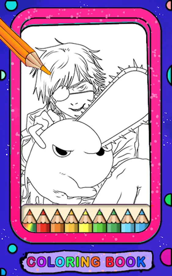 The Amazing drawing with Chainsaw Man Coloring book allows you to color the amazing Anime Coloring book who's the man character and some other characters from this universe Chainsaw Man and more..🖌️