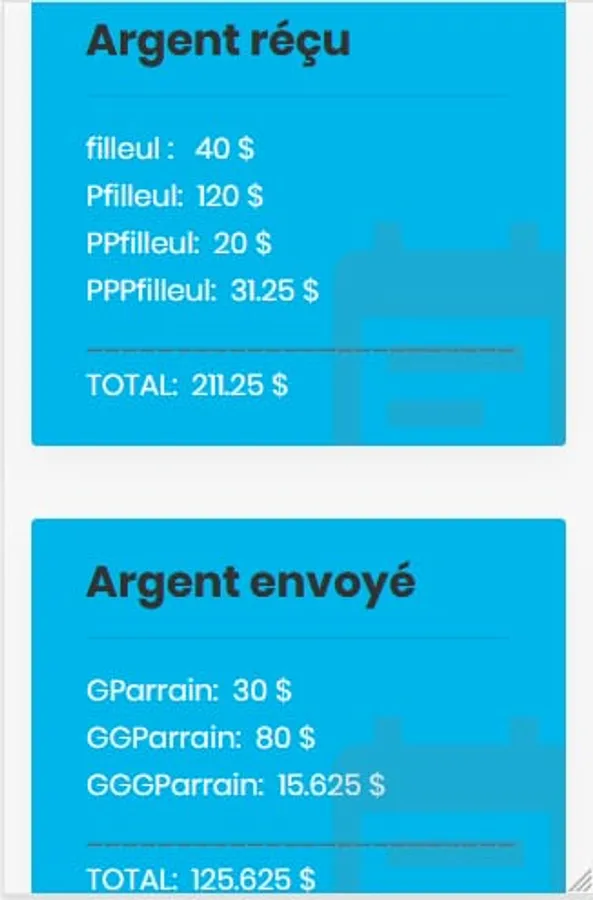 • De voir sa situation (filleuls, parrains, argent transféré, argent reçu, solde)