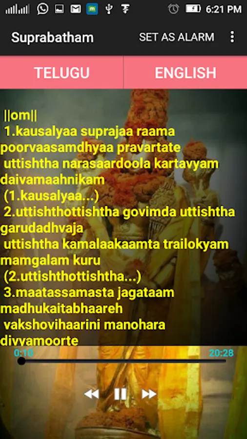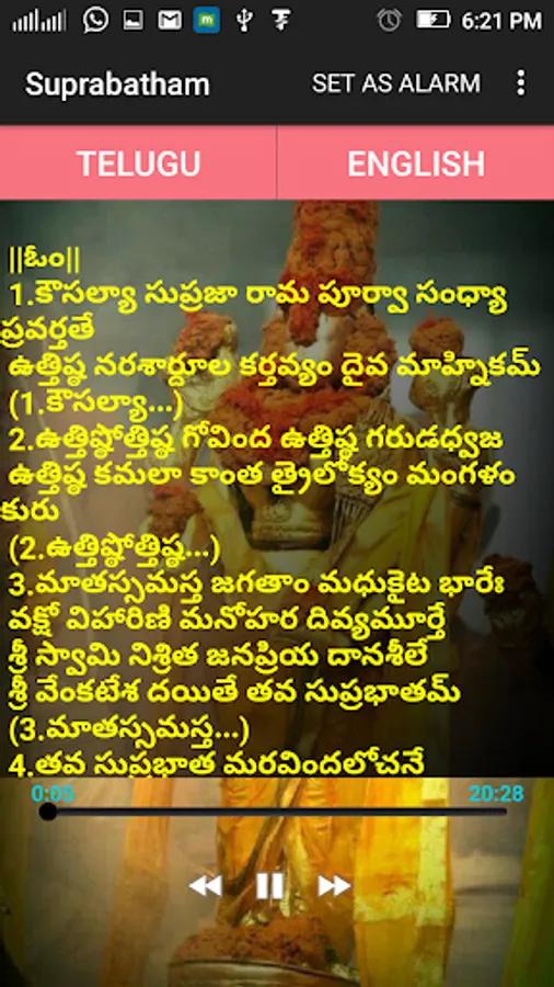 Download Venkateswara Suprabatham App(song with telugu & english lyrics) for free.
