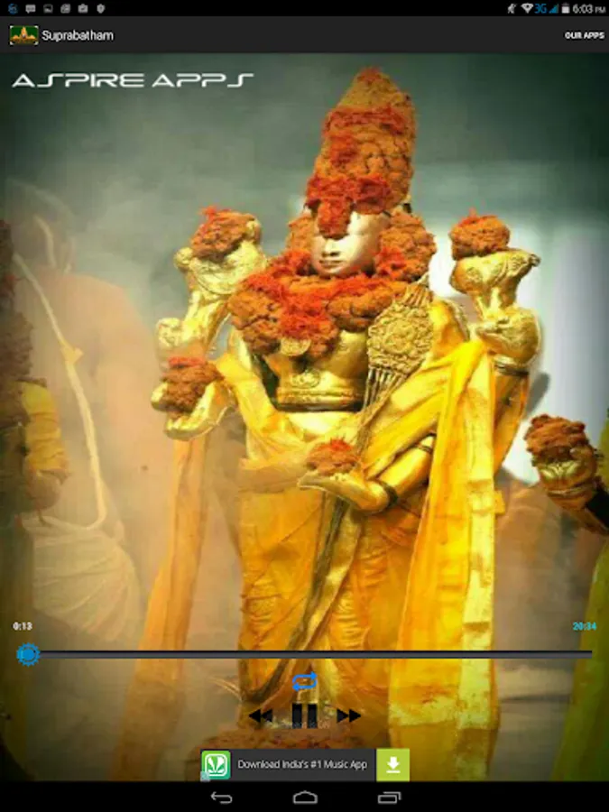Here is the most universal app for Lord Balaji. Download it to sing along. You can repeat suprabhatham as many times as you like