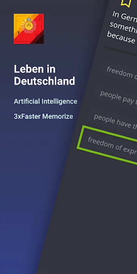 By downloading this " Leben in Deutschland " (LiD) application or any other application on the market, you can view all the questions and practice with example tests. But with this app, you can speed up your learning process to 3x. Tailored Leitner flashcards enable this and no other " Leben in Deutschland " (LiD) application can achieve this. Also, with instant translation without an internet connection, you can practice in your language. This application is the first and only one that has this feature among " Leben in Deutschland " (LiD) applications. Also, Artificial Intelligent gives recommendations when you are ready to take the exam. This innovative approach saves time and energy for you.