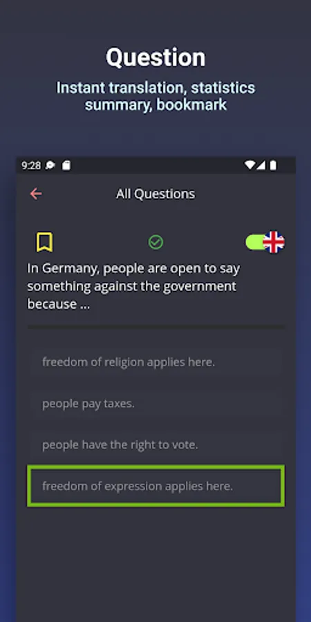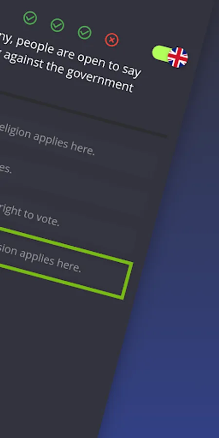 The app is designed to offer fastest and easiest way to prepare for " Leben in Deutschland " (LiD) test or the official naturalization test.