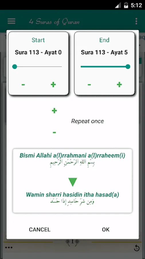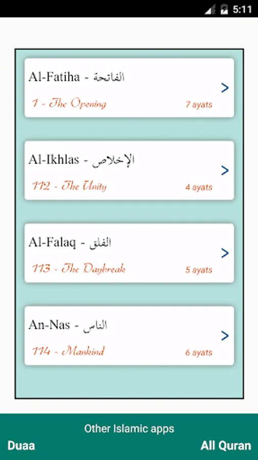 al-fatiha, al-ikhlas, al-falaq, al-nas (al-moawidatayn).