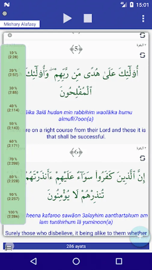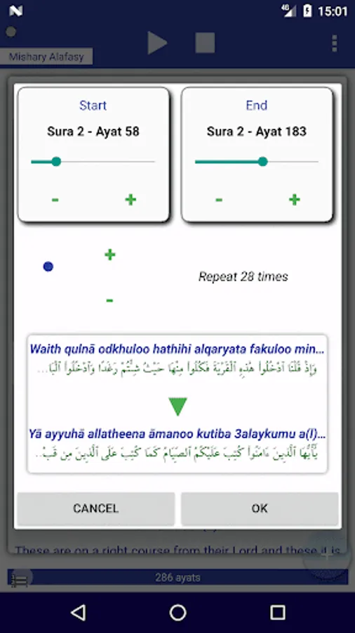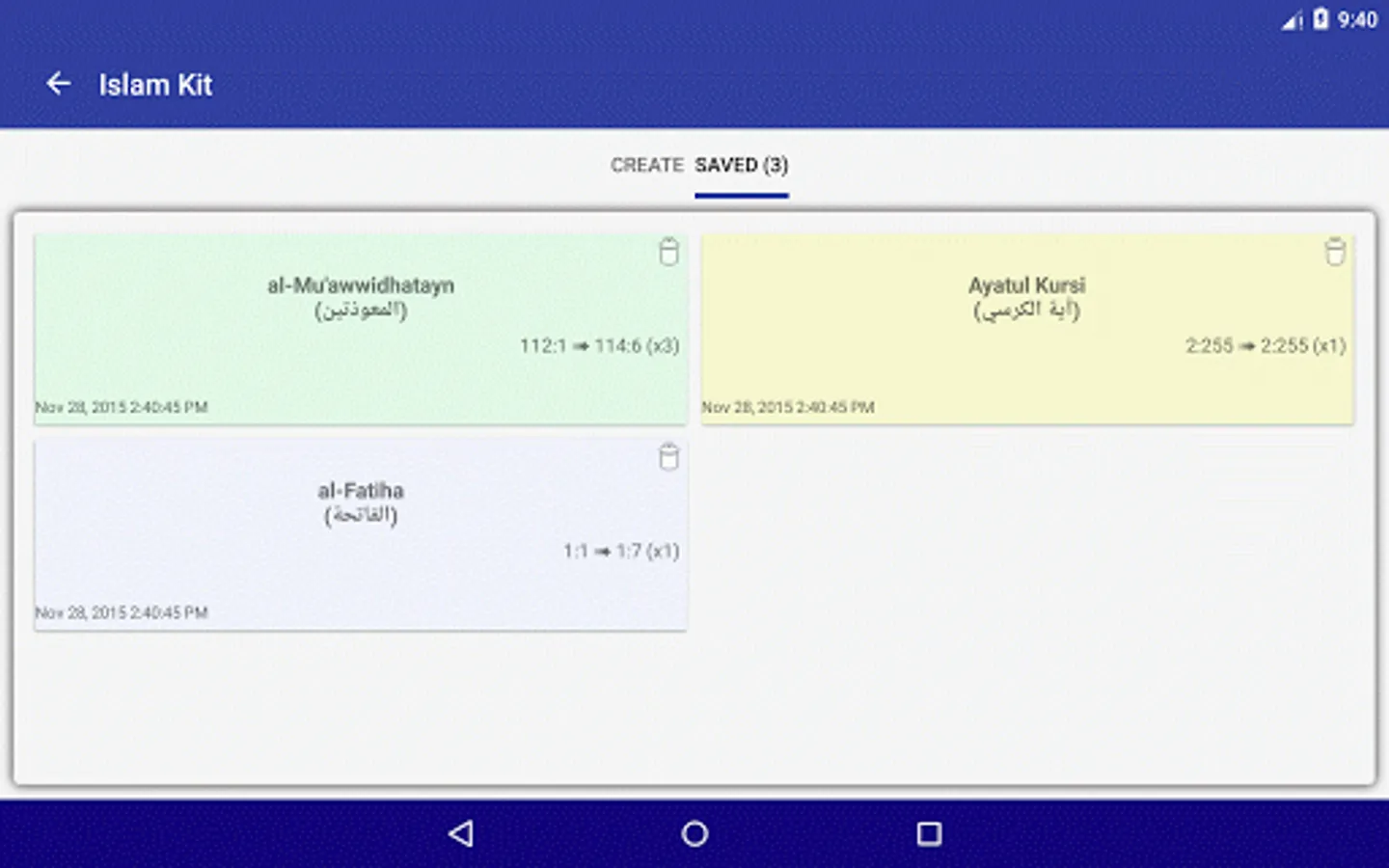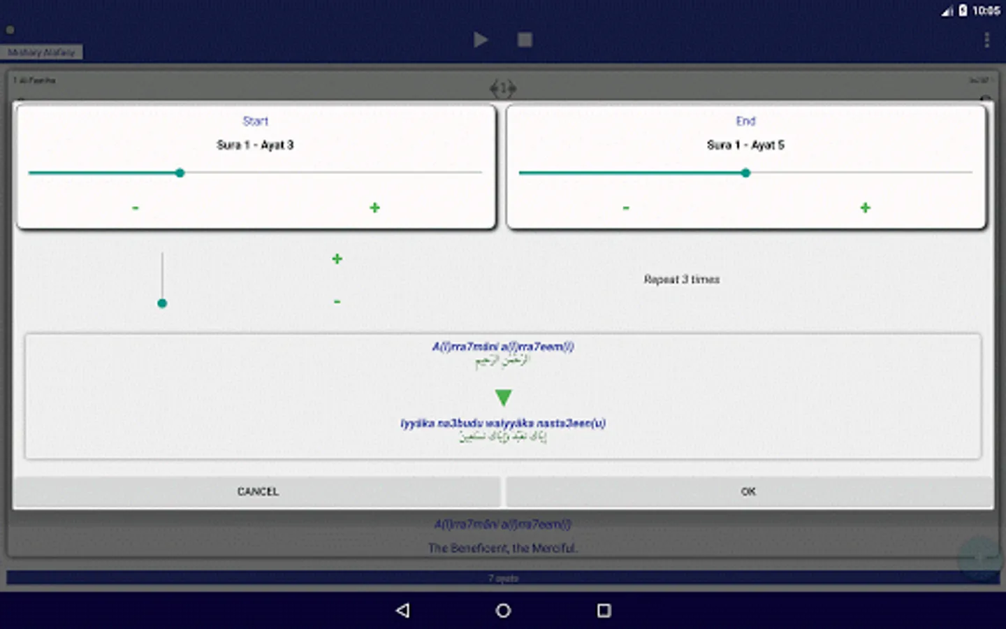 You can also create a playlist of suras or ayats to repeat several times parts of the Koran and facilitate memorization.