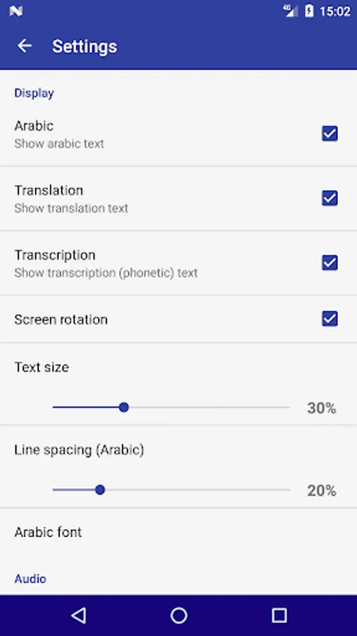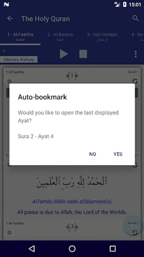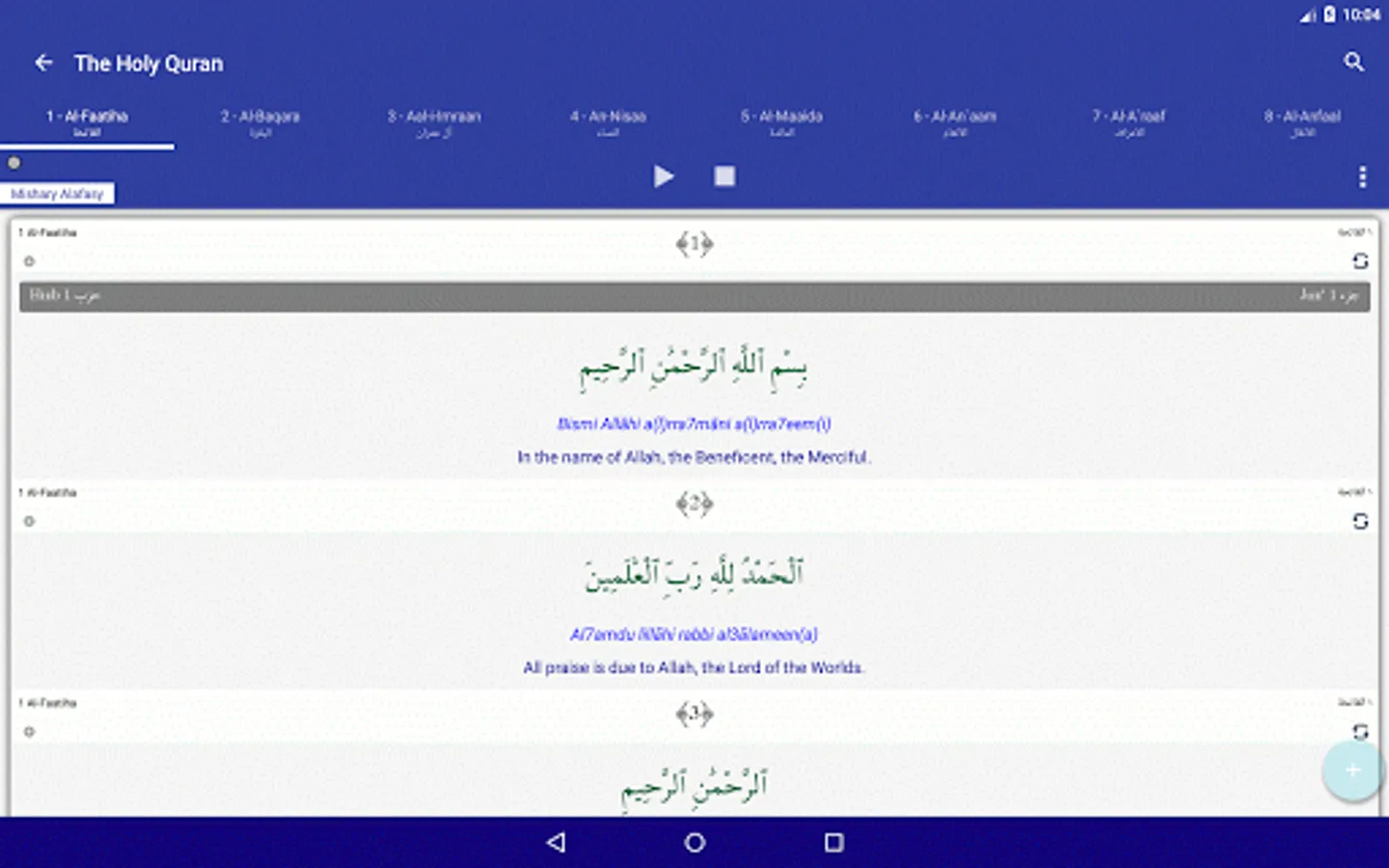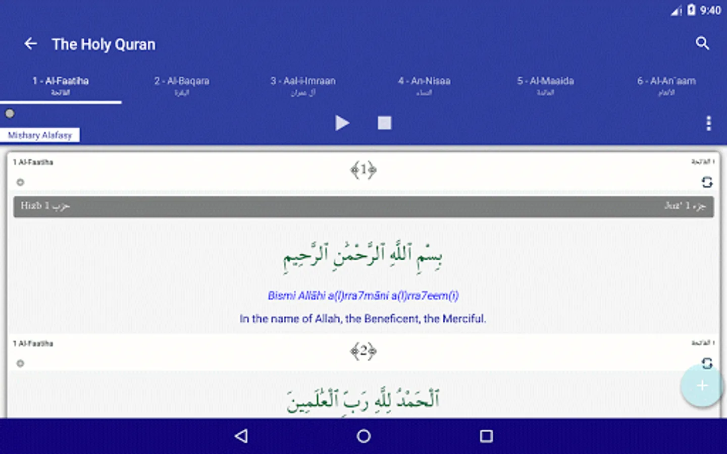 Quran Kit contains the whole Quran (Al-Quran al-Kareem - القرآن الكريم) that will facilitate the reading and/or the learning of ayats (verses) and surahs (chapters). Many translations are available for download and also the audio recitation (Tajweed) read by many reciters.