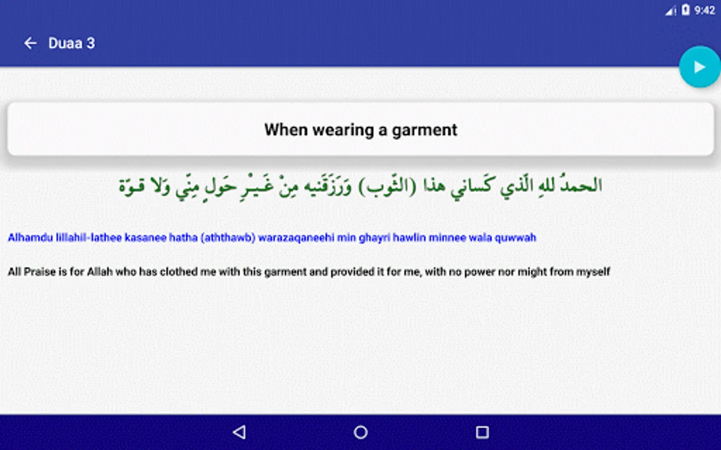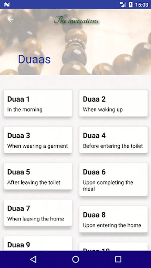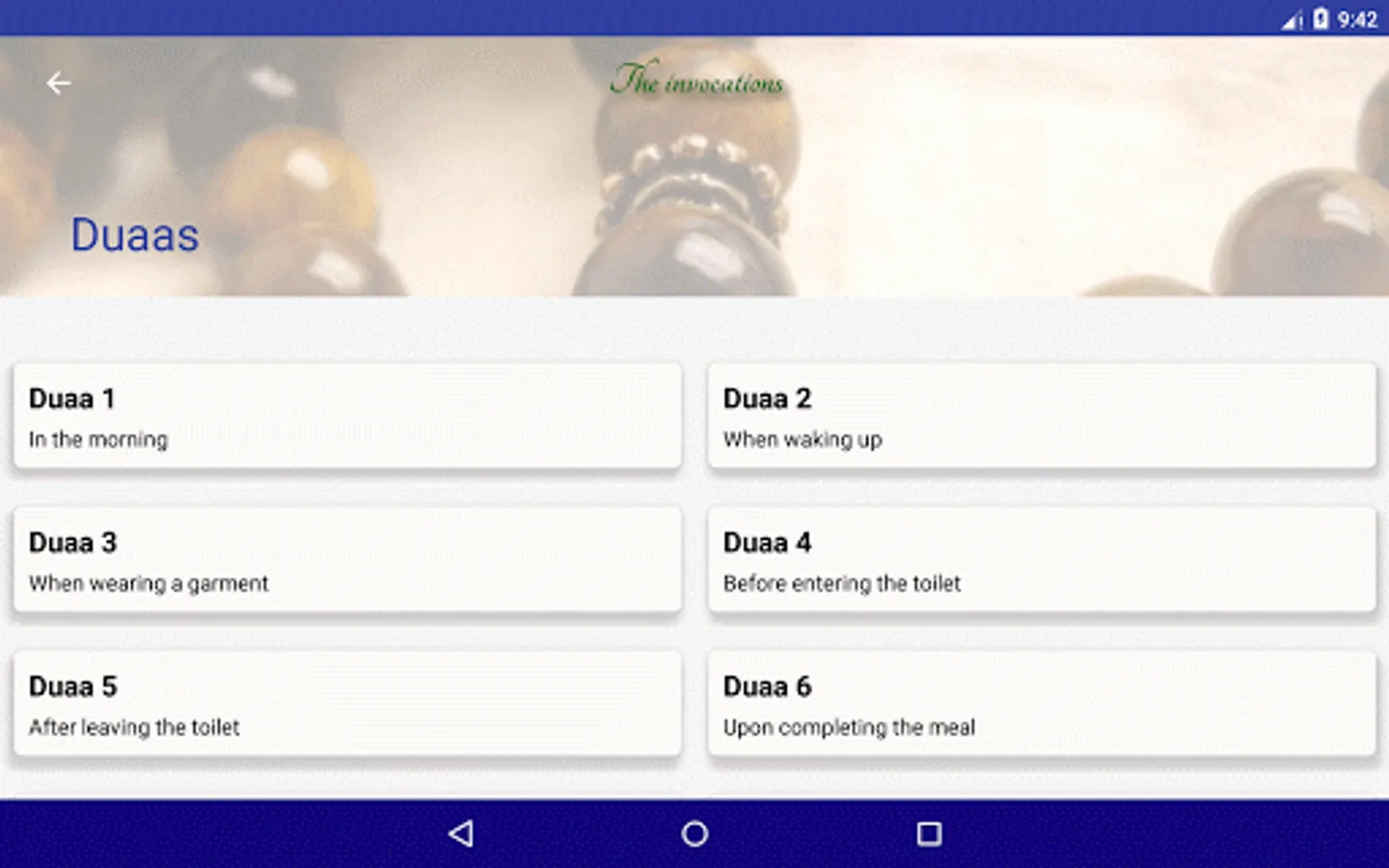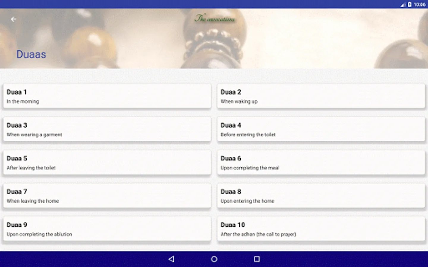Besides having one of the best Qur'anic applications, you will also have access to many invocations (Duaas) with the ability to download for each of them, the audio! These Duas are one that can be used everyday.