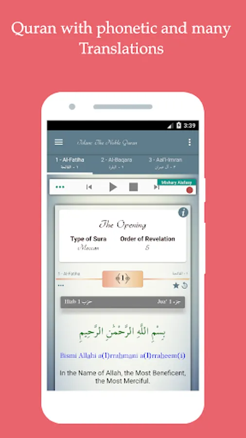 • Avoid having to take out your phone so as to go to the next Surah (سورة - which is a chapter) thanks to the AutoPlay feature.