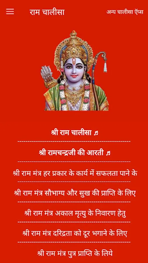 Shri Ram Ji Chalisa App- shri ram ji arti, chalisa, pujavidhi, varatkath and various mantra