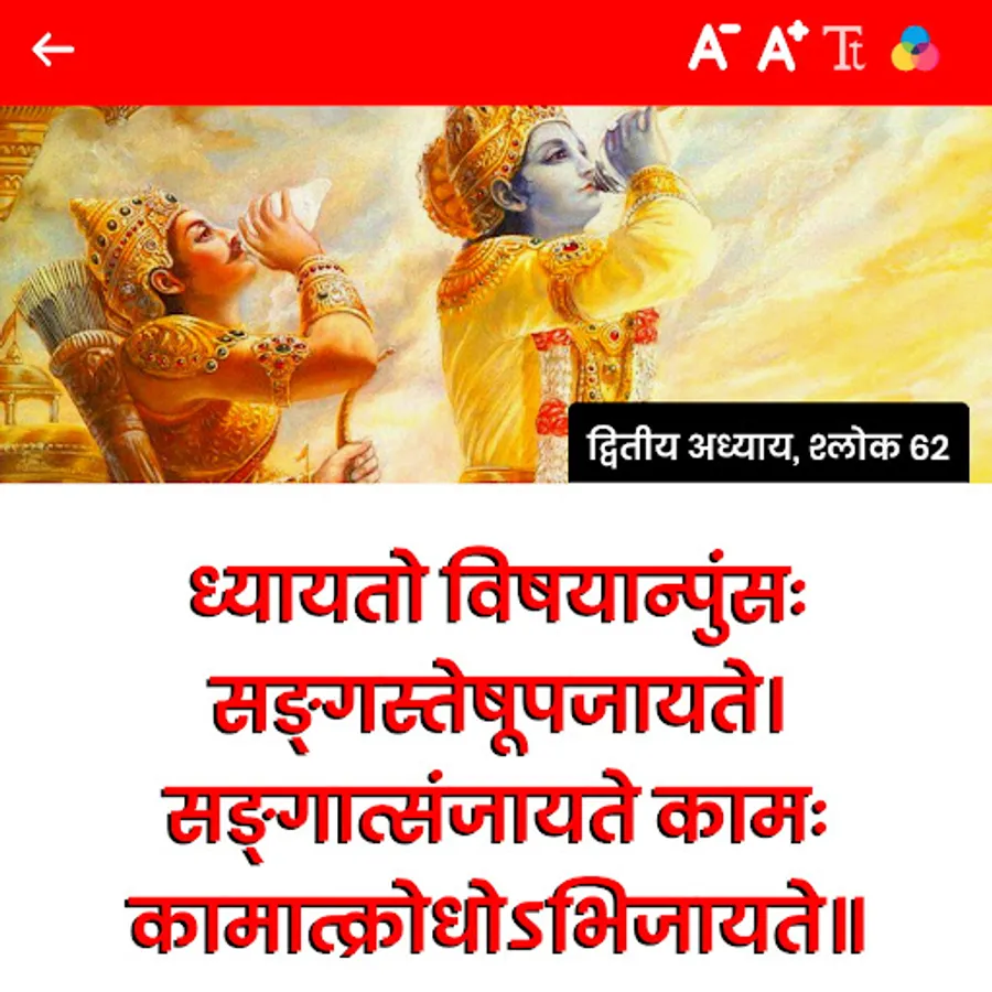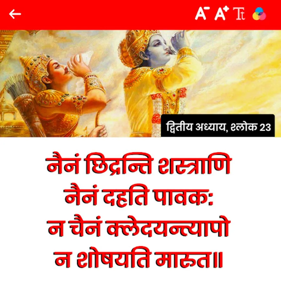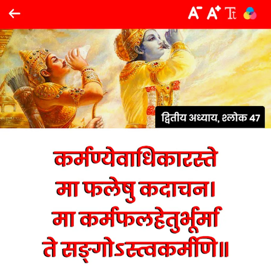 ☆ Change Font Size: You can change the font size of Shloka and its meaning throughout the app.