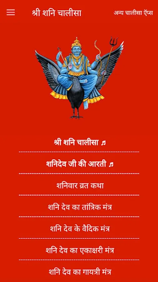 Shani Dev ji Chalisa App - shani dev ji arti, chalisa, pujavidhi, varatkath and various mantra
