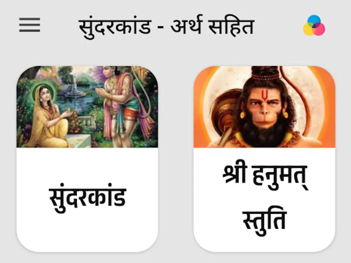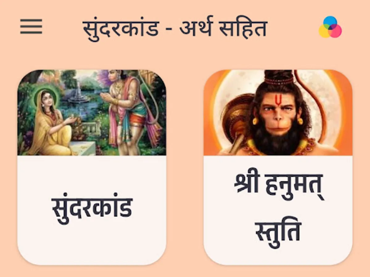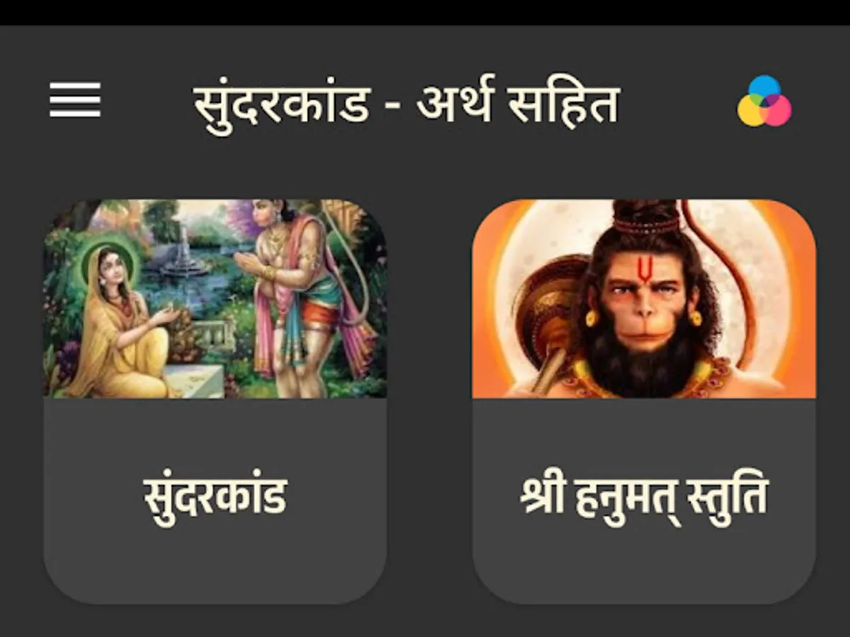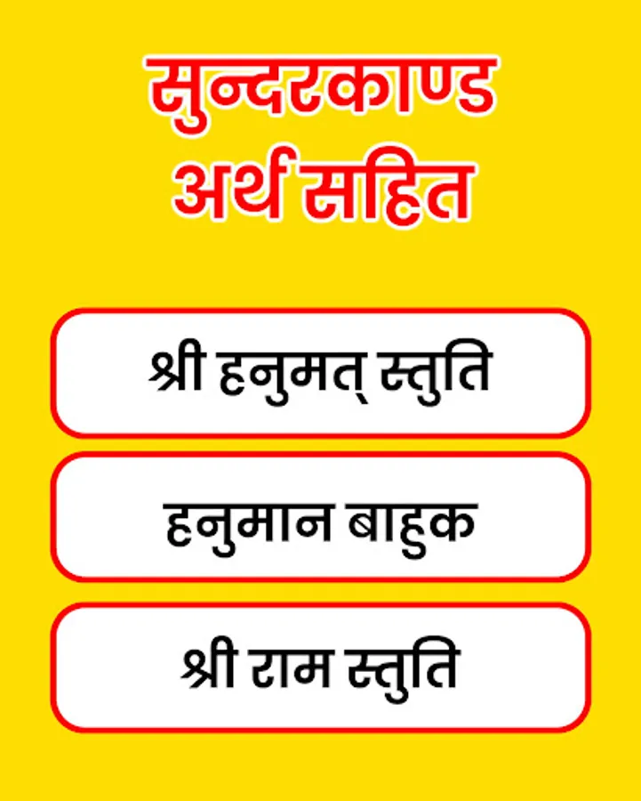 Discover the divine beauty of Sunderkand, a pivotal chapter from the epic Ramayan, with our Sunderkand Android app. Immerse yourself in the enchanting verses of Sunderkand in Hindi, beautifully crafted by Tulsidas in Ramcharitmanas. Delve into the spiritual journey of Lord Hanuman's selfless devotion and unwavering loyalty to Lord Rama. Our app, featuring the soul-stirring recitation by renowned artist Ashwin Pathak, offers a seamless experience to explore Sunderkand's path lyrics and access the Sunderkand path PDF. Experience the transformative power of Sunderkand anytime, anywhere, with our free downloadable app. Rediscover the profound teachings and melodious beauty of Sunderkand in Hindi PDF, making spirituality accessible at your fingertips.