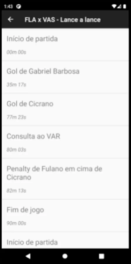 Detailed list of some games of the Brazilian championship, containing scoreboard, bid-for-bid result, among others.