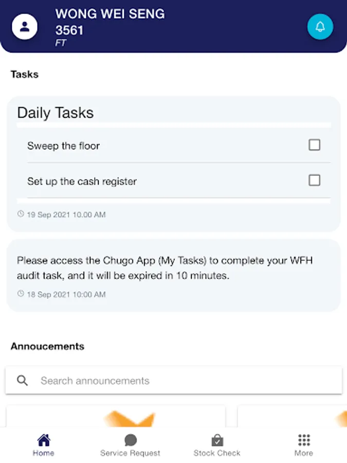 One Stop Solution for employers to manage daily tasks, retail stock check, outlets' service rating, MIS service request, eSigning, manager contact lists, foreign worker house eChecks, eLearning platform.