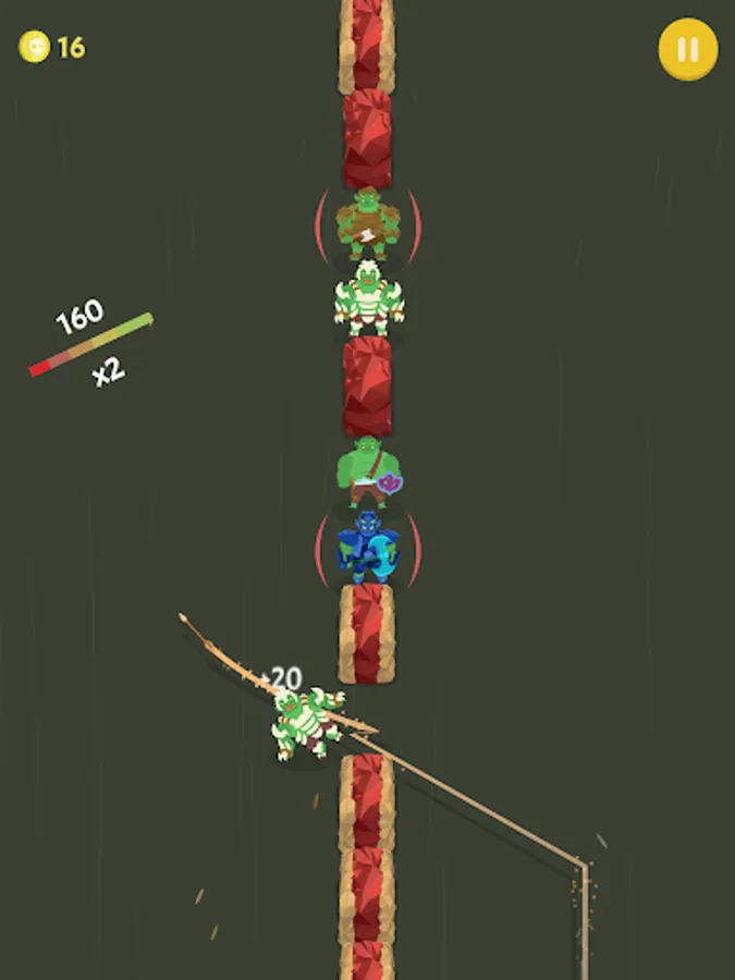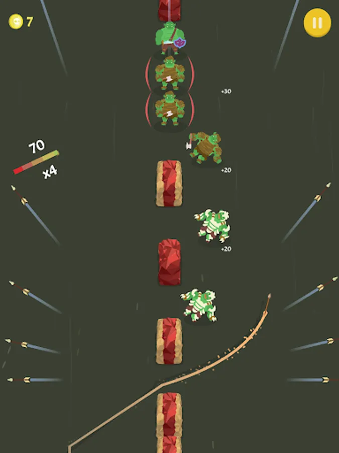 Complete missions, destroy enemies for gaining coins and upgrade your arrows. New arrows gives you ability to destroy even more orcs. Shooting bow never was so fun. Enjoy by endless simple gameplay.