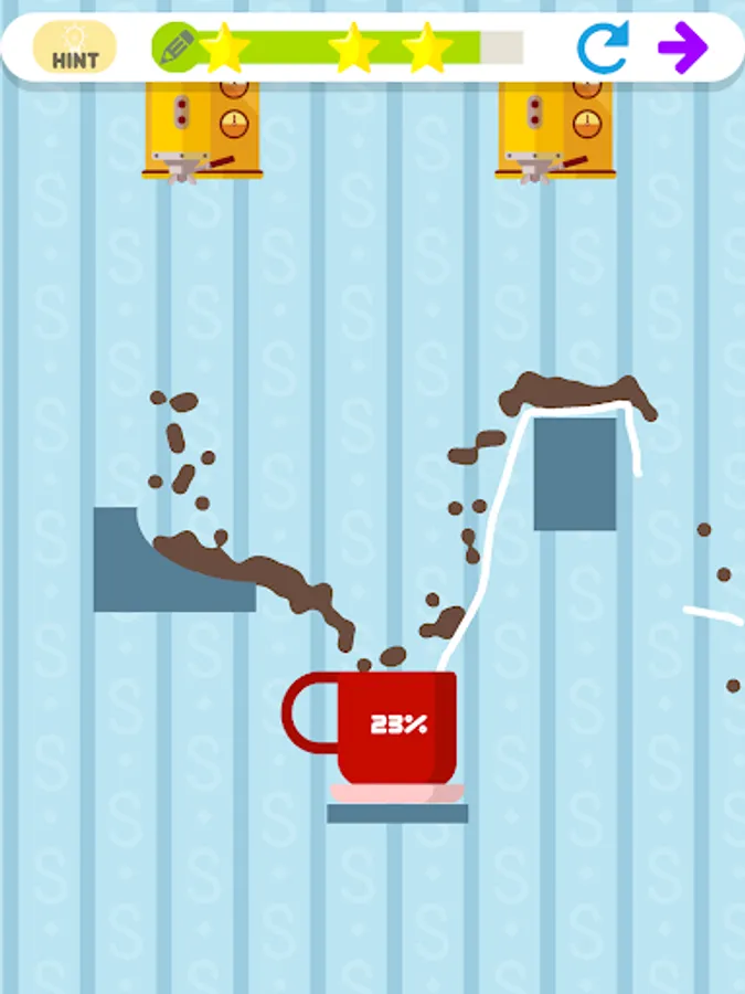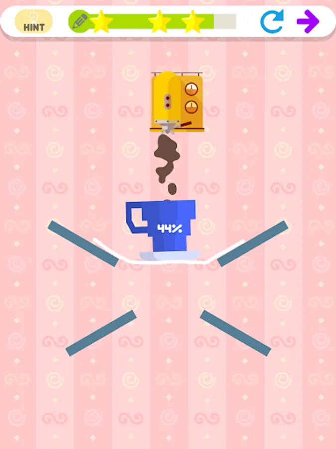 The cat is sleepy, because he needs to drink a cup of coffee to boost his performance. Your job is to draw the line correctly to fill the cup with coffee, and make the cat feel energetic again.