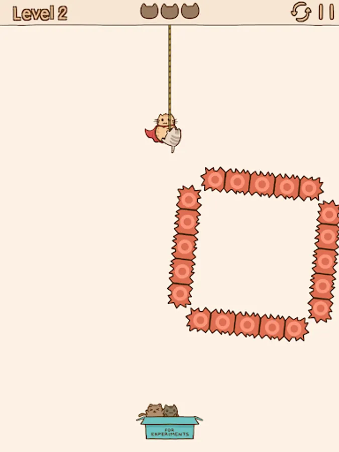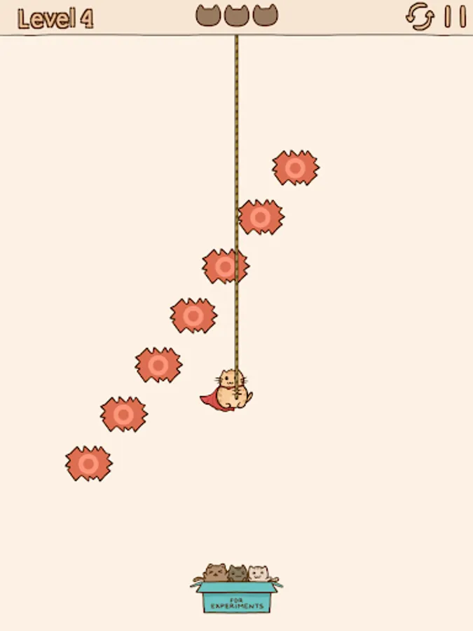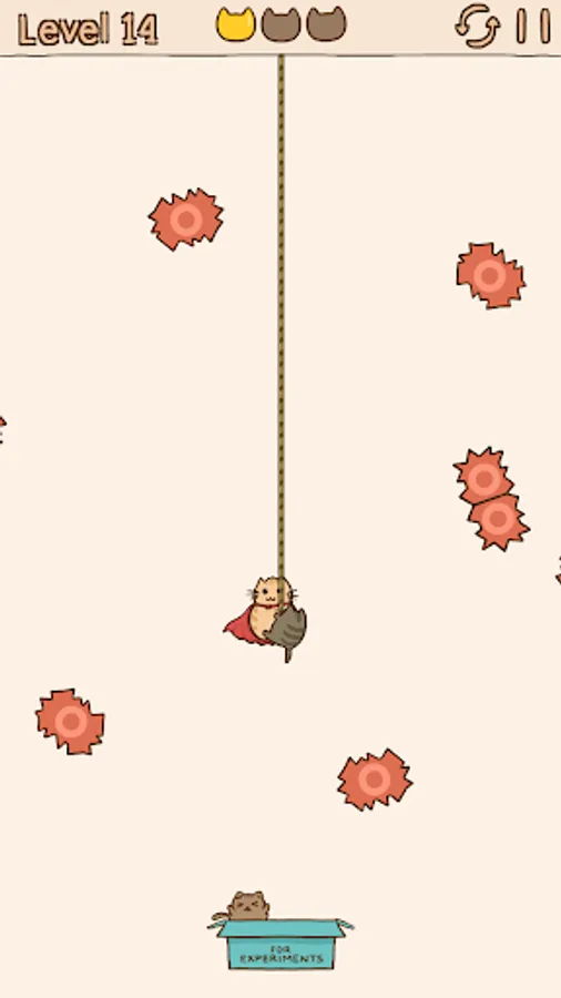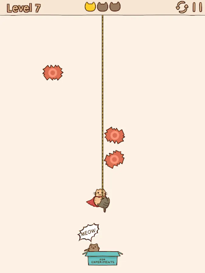 In this game, you have to go down with the rope, and take kittens one by one and climb back to the top. Sounds easy ? Not, You have to be careful with deadly mechanic, and moving obstacles, since they don’t like cats and kittens.