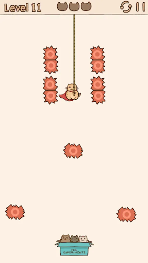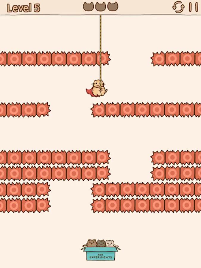 5. After taking a kitty with you, go up to the very top of the screen to save it. So, save the all kittens from 30 levels.