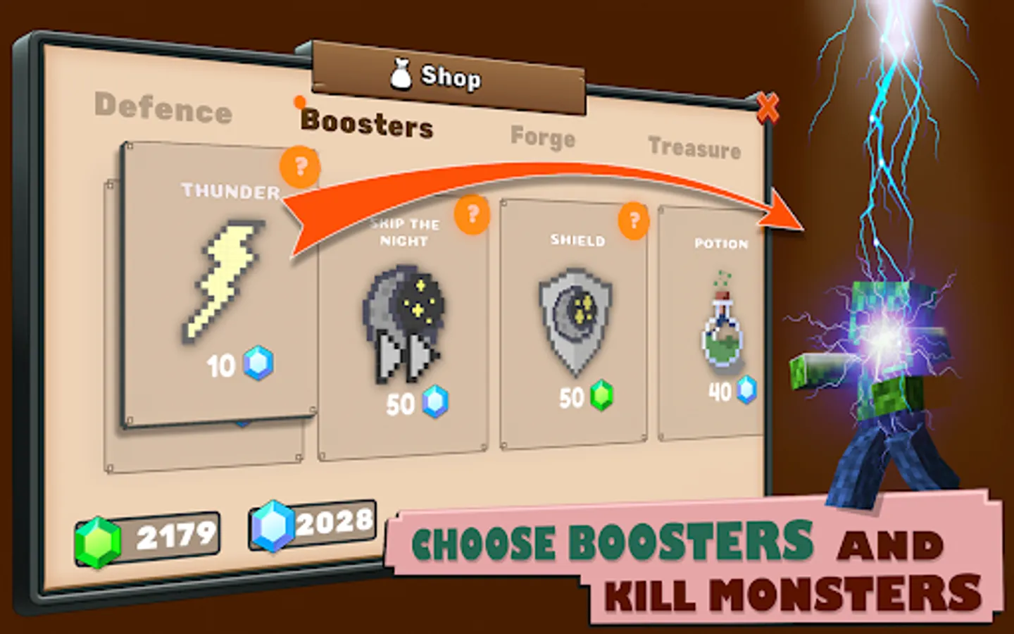 You have to protect your forge from the monsters that will roam the area every night. To do this, you need to build the best defense before sunset. Build defensive and attacking towers and various walls, improve defenses, set traps, use boosters. Your main task is to keep the defense from attacking monsters until sunrise.