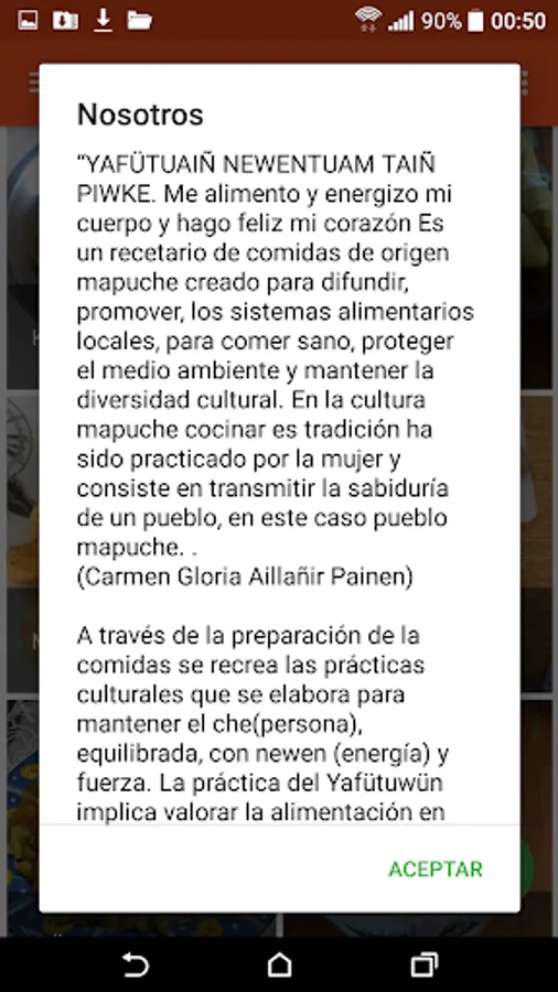 It is a recipe book of foods of Mapuche origin created to spread, promote, local food systems, to eat healthy, protect the environment and maintain cultural diversity. In the Mapuche culture, cooking is a tradition practiced by women and consists of transmitting the wisdom of a people, in this case, the Mapuche people.