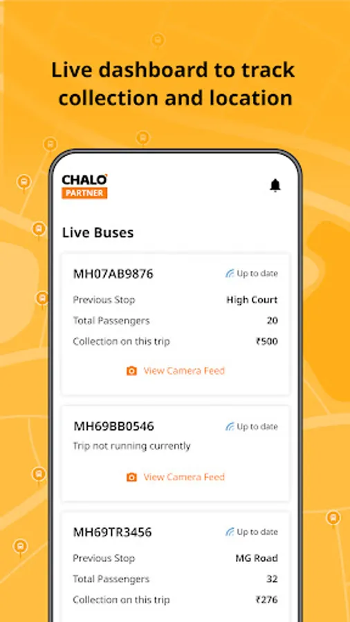 Chalo Partner app gives you comprehensive details about your entire fleet on your phone. Stay in control of your bus operations with comprehensive information about the collection in your bus, trip level data, settlement updates, etc.
