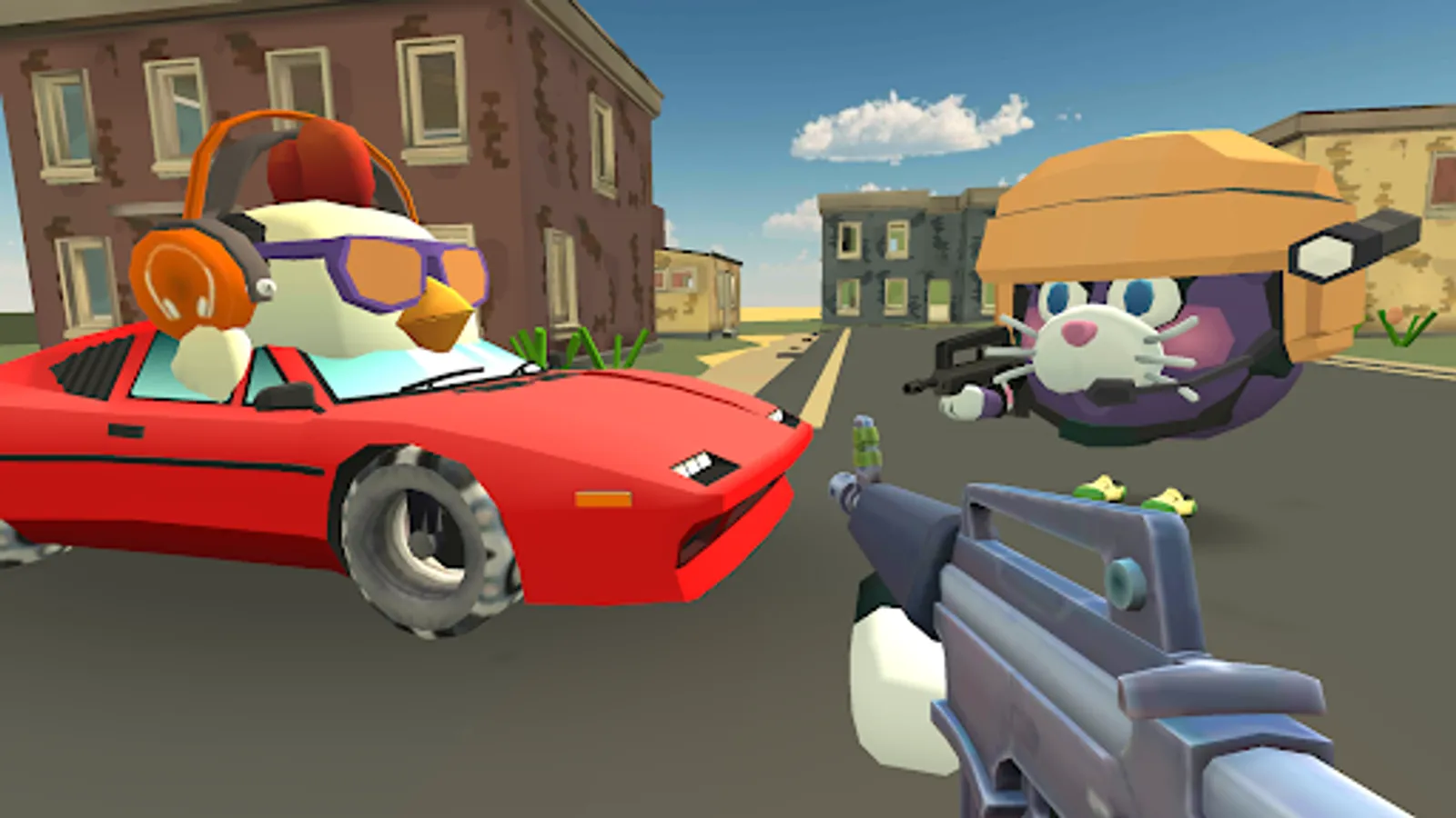Armed chickens🐓 shoot and fight with each other🐓. Shooting on the network with two modes, 5🐓 vs 5🐓 and against all. You can cool your rooster, weapon, beak, sneakers and caps. Throw explosive eggs and arrange a slaughter. Join to chickens firefight.