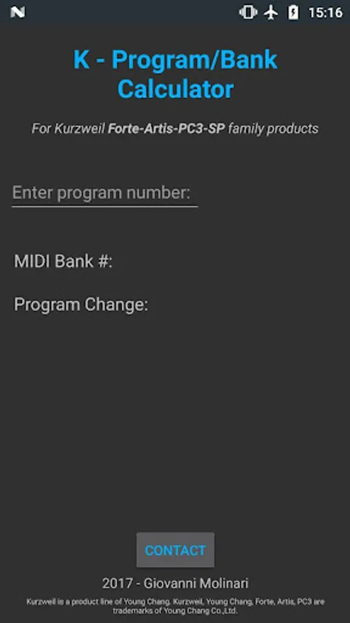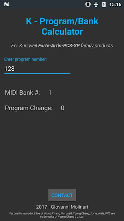 You're using a Kurzweil keyboard with a DAW or an external MIDI controller and you don't understand what combination of MIDI Bank and Program change messages to send in order to call up the sounds you need? This simple app is the solution, as it converts Kurzweil program number into the appropriate MIDI Bank and Program change.