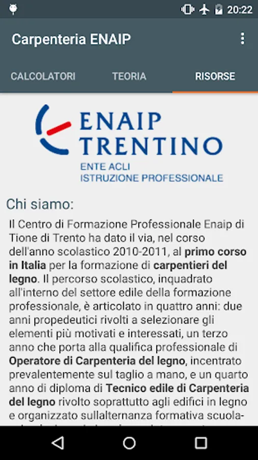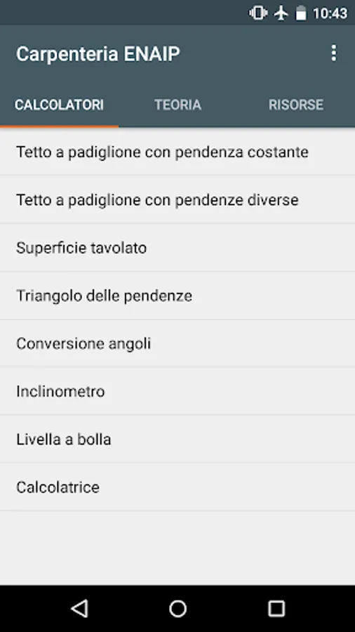 Developed specifically for the Carpenter School Institute ENAIP of Tione di Trento, the goal of this app is to simplify some operations related to trigonometry and geometry of a coverage characteristics. There are several calculators and useful features for anyone to have to work with wooden roofs and surfaces: