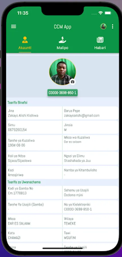 mfumo unasaidia mwanachama wa ccm kujisajili na kuangalia taarifa zako za usajili,kuona historia yake ya malipo (ada za uwanachama na michango mbalimbali)