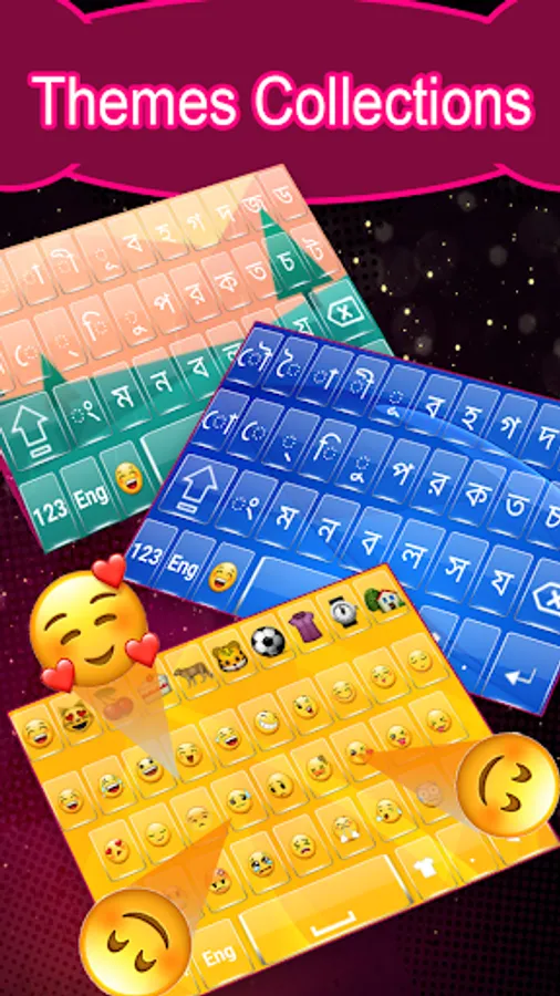 Bangla keyboard designs and change your old mobile keypad layout once and for all. We offer you many custom keyboard themes and plenty of brand new emojis for Bangla keyboard. Now you can change your Bangla font color and express every attitude using cool symbols and emoticons. Send love messages in the Bangla language, chat with your friends or comment on major social networks with the free keyboard! Don't hesitate, download Bangla Keyboard App and experience a brand new way of texting in the Bangla language. Bangladeshi keyboard is dual language keyboard English and Bangla language. Use both languages at the same time in Bangla keyboard.