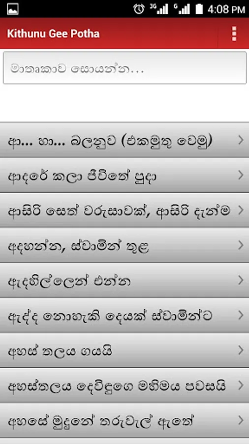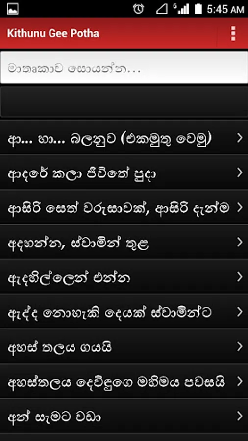 ✓ Search songs through entire song text using Singlish / English or Sinhala Unicode words.