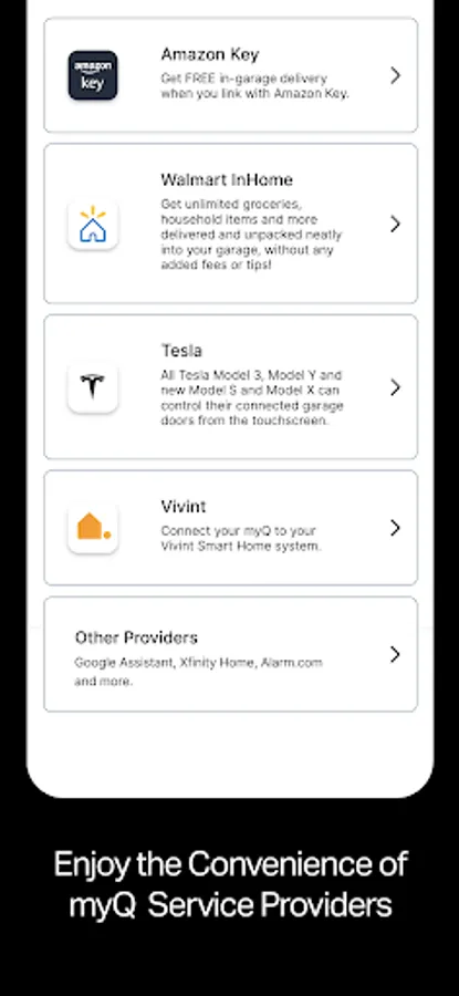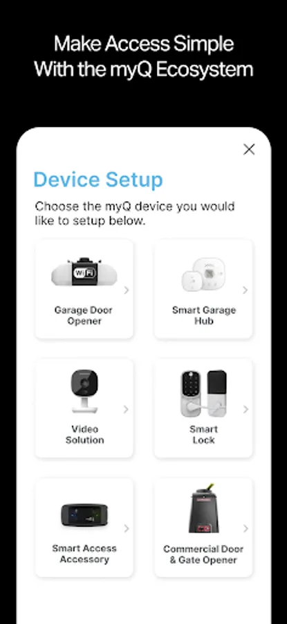 The myQ smart access app allows you to easily open, close or check the status of your garage door, commercial door, gate or myQ home lighting from anywhere using your mobile device. The myQ app supports myQ-enabled products from Chamberlain, LiftMaster.