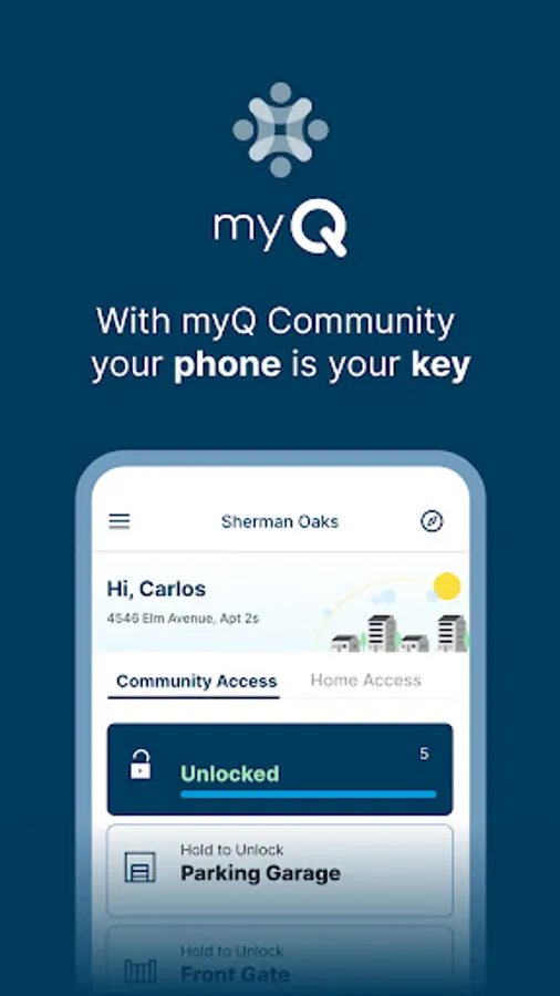The Community by myQ app is part of the myQ Smart Community access solution for apartment buildings and multifamily communities. The app allows residents to manage guest access with their smartphone – anytime, from anywhere. With crystal-clear video and customizable access permissions, residents can view and verify their guests’ identities before granting them entry to the building or community from their smartphone. Through the Community by myQ app residents can: