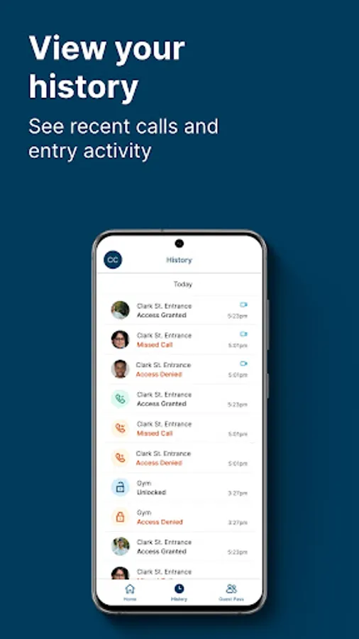 * Receive video calls for visual confirmation of the guest trying to access the community and/or building