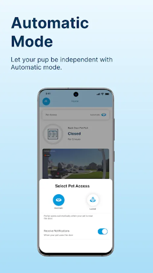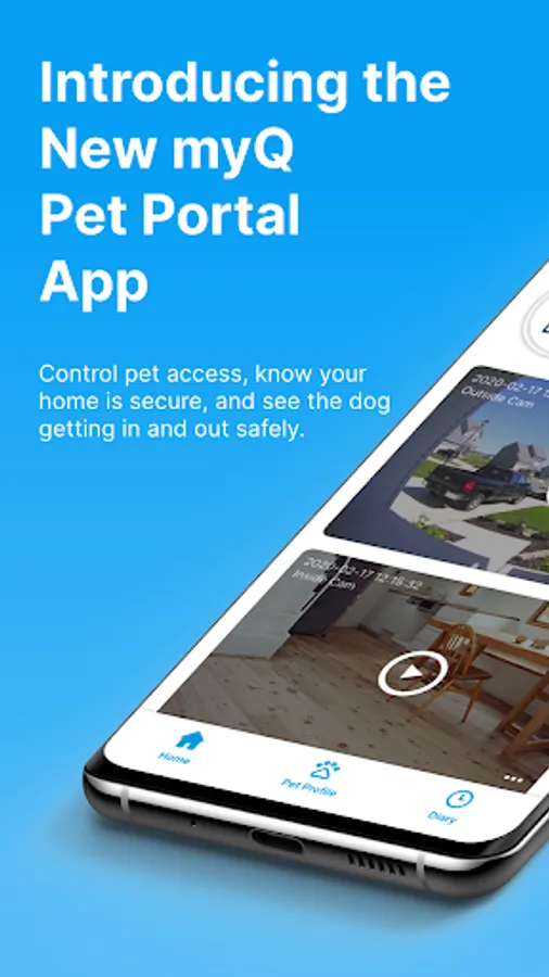 The myQ Pet Portal App is designed to let pet parents set up their myQ Pet Portal System. The app allows you to open and close the Pet Portal, from anywhere using their mobile device, to safely let their dog out to potty and play. Additionally, the Pet Portal System’s built-in cameras allow pet parents to visually confirm within the app when their dog comes and goes, and even talk with the pet via 2-way audio.