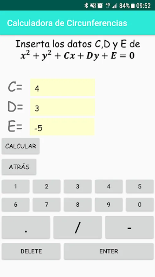 Enter different types of data to obtain the different shapes of the circumference equations.