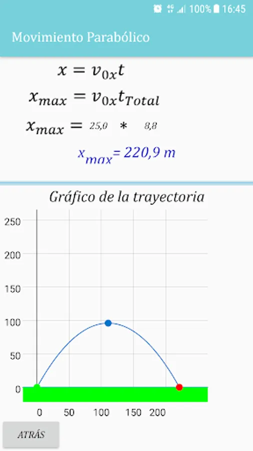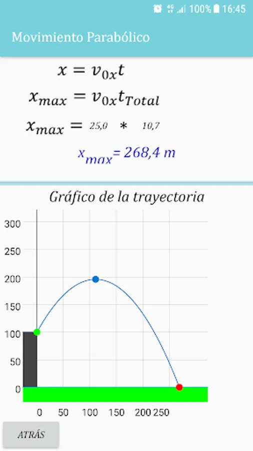 You also have a useful graphic to visualize the trajectory of the projectile.