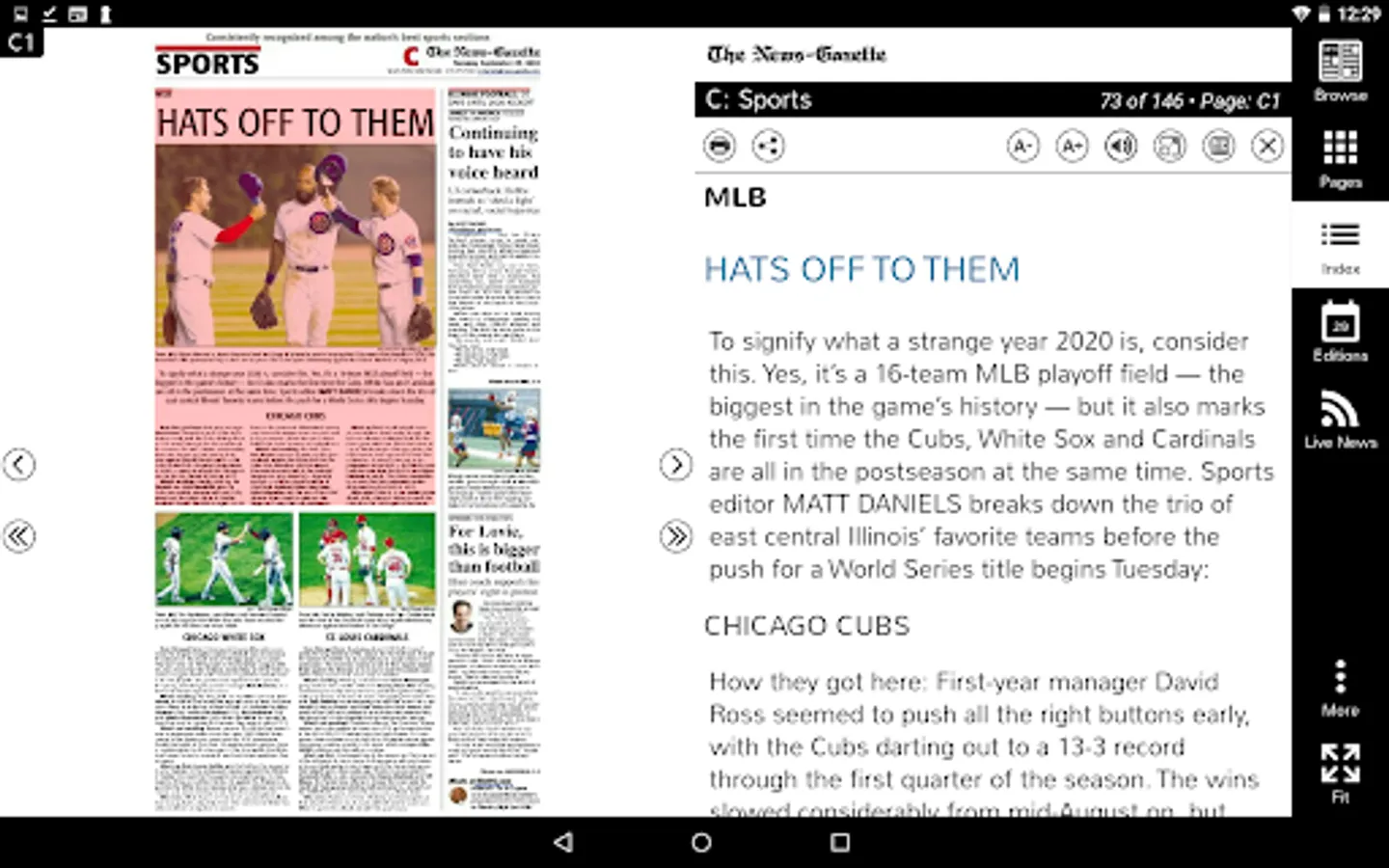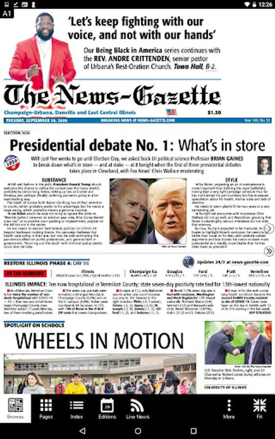 The News-Gazette 2-in-1 app now includes live news, keeping you up to date on the latest news in real-time, along with convenient access to the print replica e-edition. The eEdition app is an exact replica of our print edition. Enjoy Champaign-Urbana's daily newspaper with search, print and email articles, adjustable font-size, and offline reading.