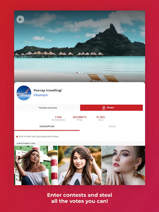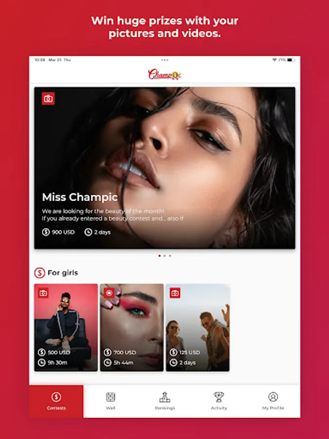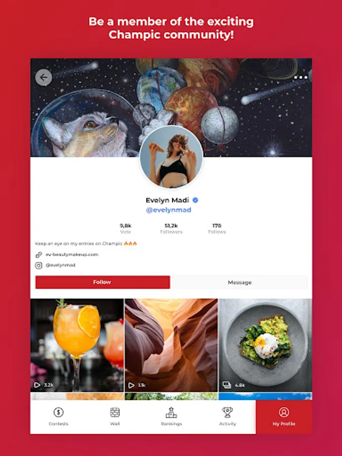 Empty likes are over! At Champic, you can compete with others for valuable prizes and put yourself to the test with your pictures or videos on your phone in countless competitions. Who is the best chick? Whose video are you best about laughing at? Who has the best party, travel, cooking or car entry? Who will win your chosen outfit from any clothing store and who will take home the grand prize? Find out for yourself and invite your friends to vote for you! Become a member of the Champic community and get on the wall of the champions!