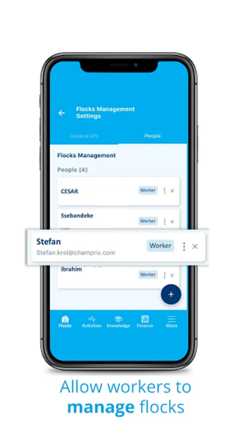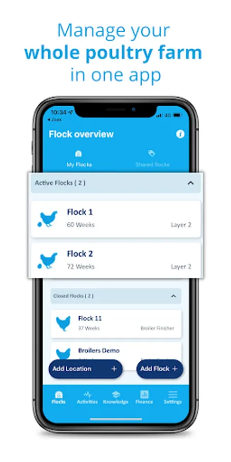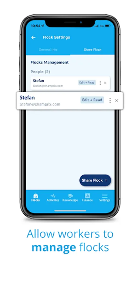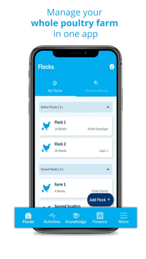 • Share flocks with workers and advisors to manage your farm from a distance.