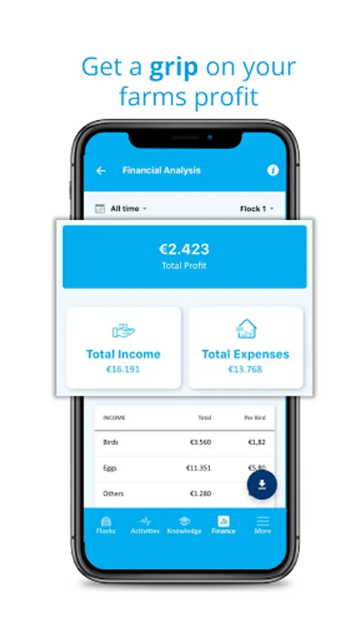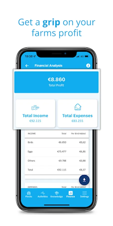 When you want to increase your farm's profits? Then it is essential to get a grip on your farm's income and expenses. Finance tracker in the app will support you with: