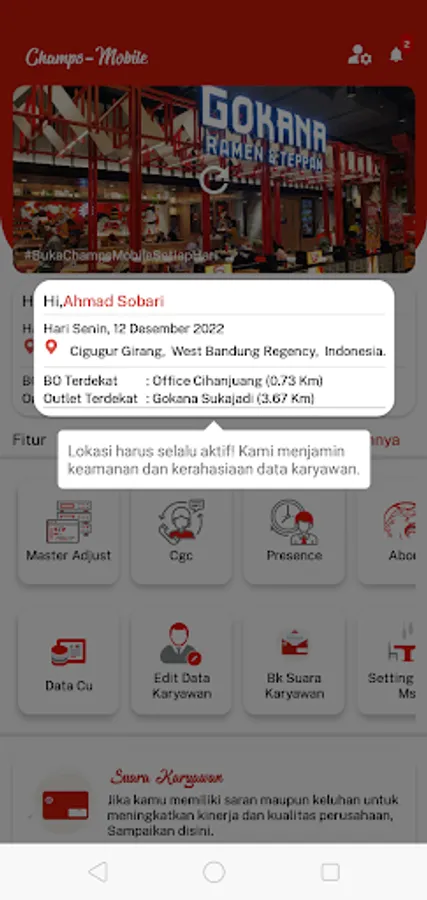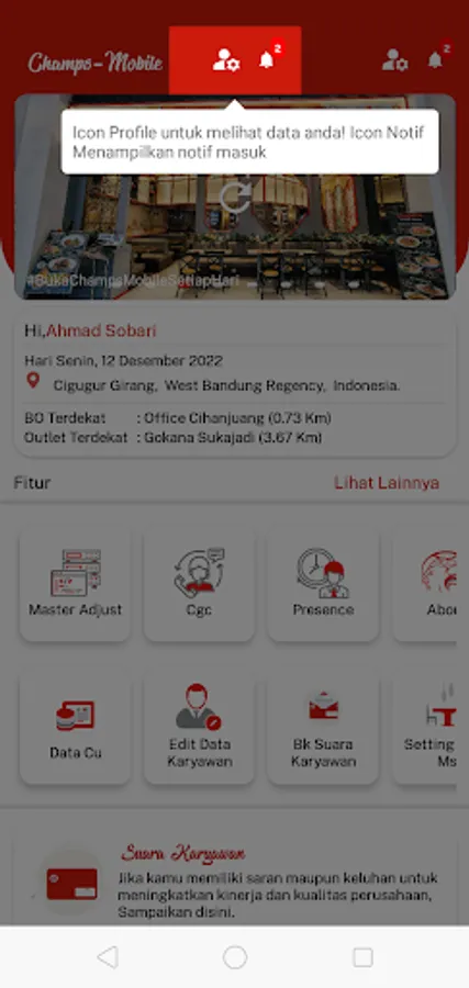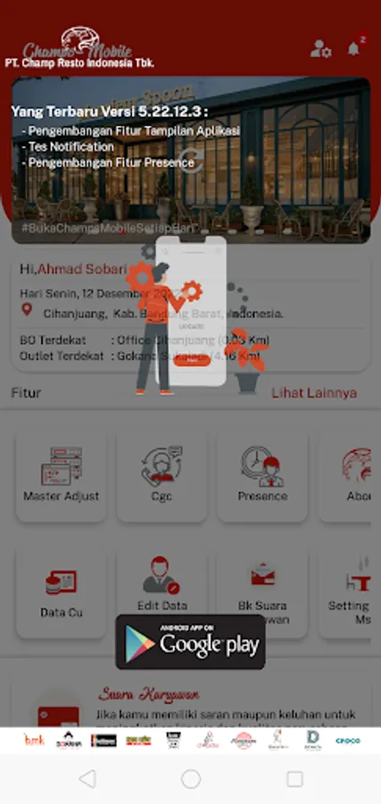 Champs Mobile is an official internal application from PT. Champ Resto Indonesia .Tbk which was developed by the ICT Department.