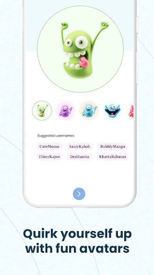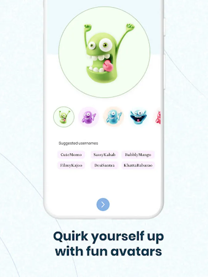 1. Create your profile by selecting from 1000's quirky avatars and fun names 🥰