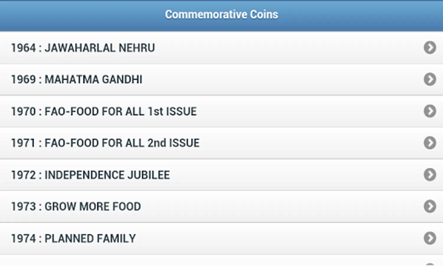 The first commemorative coins was dated 1964 and had a bust of Jawaharlal Nehru on observe and was issued in one & half rupee.